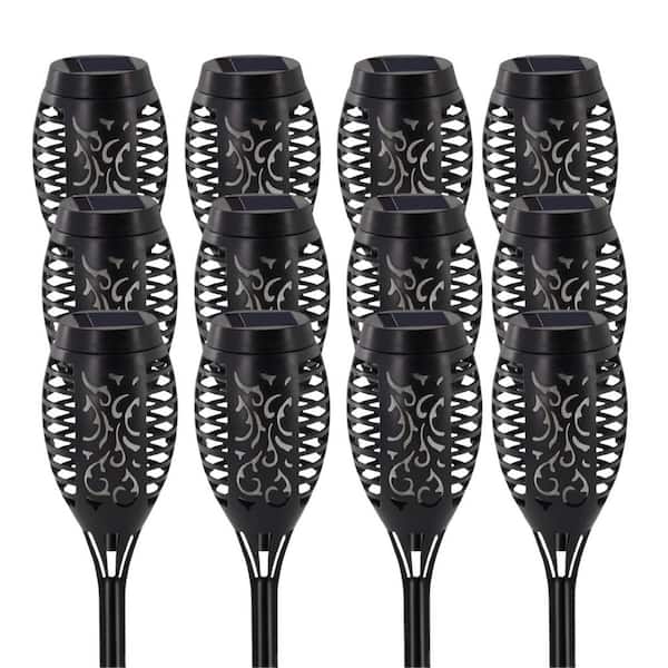 12 Pack Mini Solar Tiki Torches with Flickering Flame Outdoor Waterproof for Garden Patio Yard Pathway