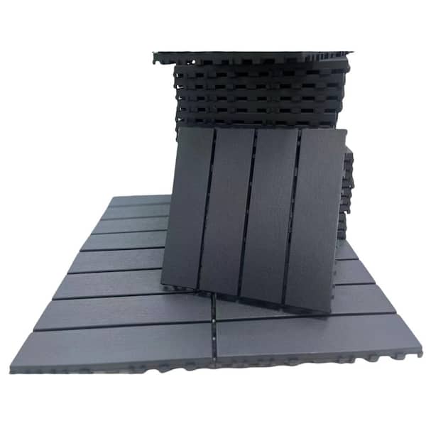 12 in. x 12 in. Plastic Waterproof Outdor Interlocking Deck Tiles, Gray (36-Pack)