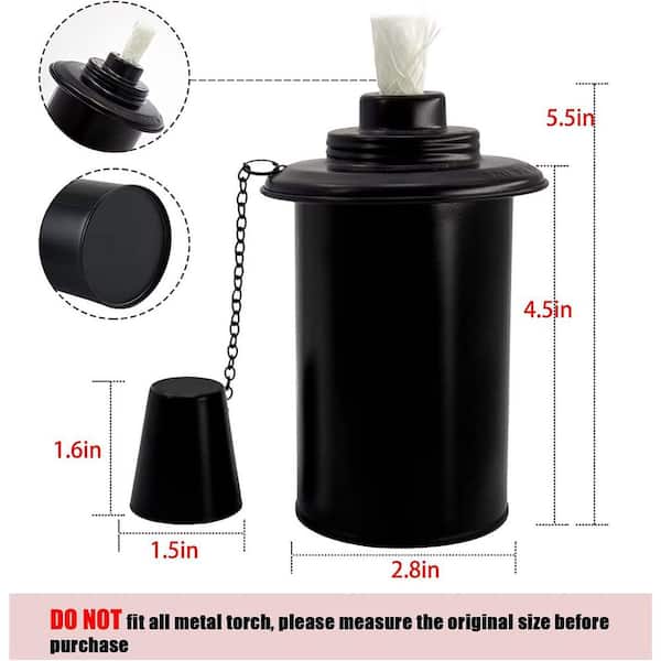 12 oz. Black Metal Torch Replacement Canisters Outdoor Refillable Lanterns with Wicks and Covers 4 Pack