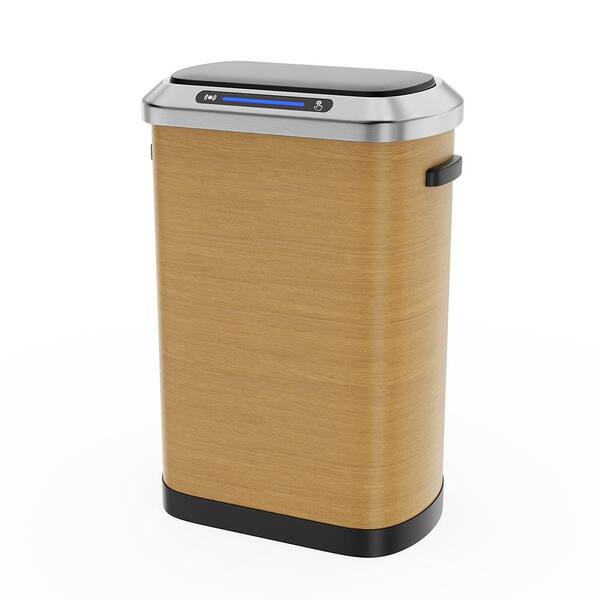 13 Gal. Smart Automatic Metal Household Trash Can with Full Intelligent Sensor, Hands Free Operation in Brown Wood