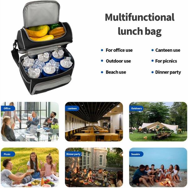 14 qt. Double Deck Insulated Leakproof Lunch Bag Cooler with Dual Compartment for Hot and Cold Separation in Grey