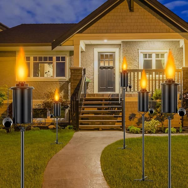16 oz Metal Citronella Garden Torches with Adjustable Height and 4-Prong Stake Outdoor Decor 6 Pack