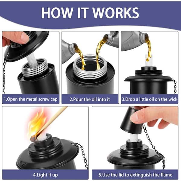 16oz Metal Citronella Garden Torch with 4-Prong Stake Outdoor Flame Light for Patio Pathway Party 4 Pack