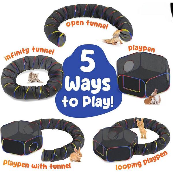 18 in. H Plastic Portable Indoor/Outdoor Cat Garden Fence Enclosure Playground Tent and Tunnels in Black