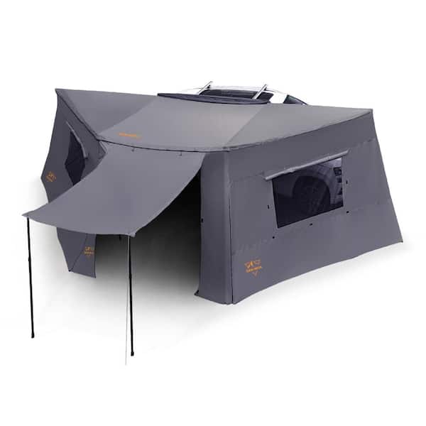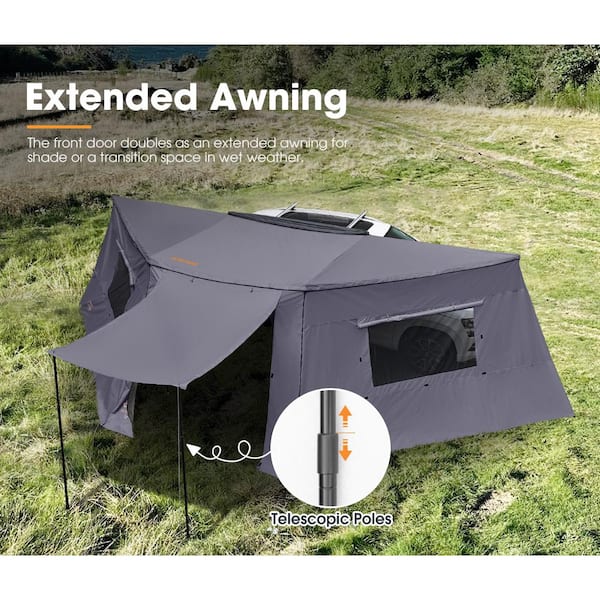 180° Freestanding Awning Tent,Car Side Awning Waterproof w/ Side Wall Privacy Screen,Built-In Pegs and LED Lights,Black