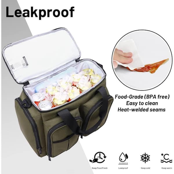 19 qt. Can Large Insulated Lunch Bag Leakproof Soft Cooler with Multiple Pockets Army Green for Men and Women Work