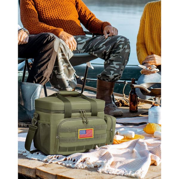 21 qt. 20L Tactical Leakproof Insulated Cooler with Detachable Molle Pouch for Camping Fishing Beach Picnic Work Green