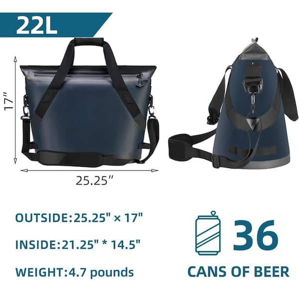 22 qt. Leakproof Insulated Soft-Sided Cooler Bag with Airtight Zipper and Waterproof Layer in Grey for Camping and Beach