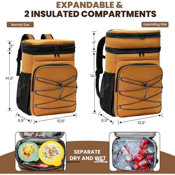 24 qt. 48-Can Expandable Backpack Cooler Insulated Leak Proof Double Deck Waterproof Lightweight Bag for Picnic/Camping