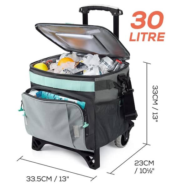 32 qt. 50-Can Collapsible Rolling Cooler Leakproof Insulated Soft Bag with Wheels All-Terrain Cart for Outdoor Travel