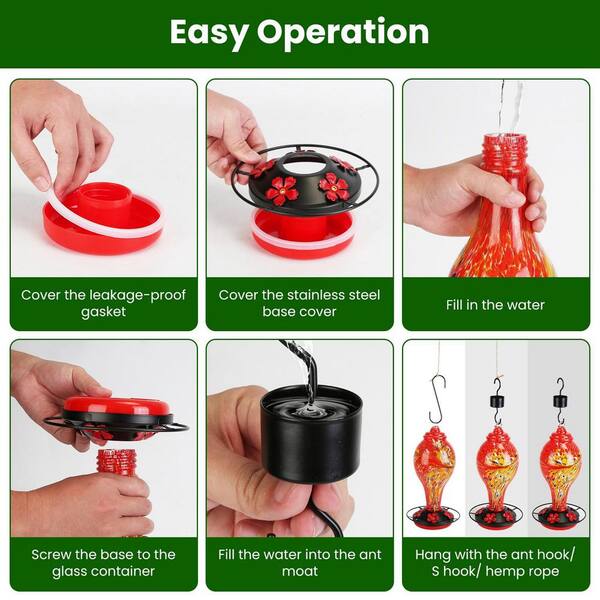 33 oz. Blue Glass Hand Blown Hummingbird Feeder with 5-Flower Feeding Port