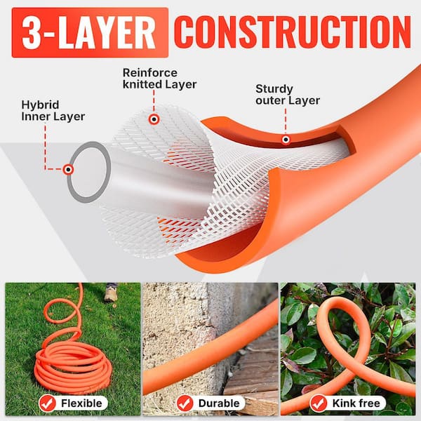 40 ft. Heavy-Duty Stainless Steel Garden Hose with 10 Pattern Spray Nozzle Kink-Free Rust Resistant for Outdoor