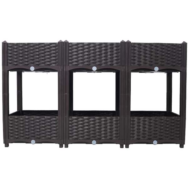 47.20 in. Brown Plastic Rectangular Outdoor Elevated Planter Raised Beds with Drainage Plug for Vegetable/Flower/Herb