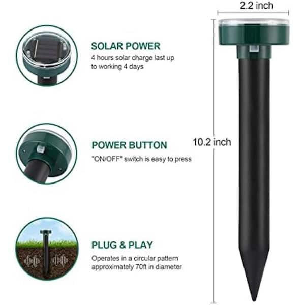 5-Watt Solar Mole Electronic Outdoor Dogs, Cat, Coyote, Deer, Fox, Racoon, Skunk Ultrasonic Spikes Repellent (4-Pack)