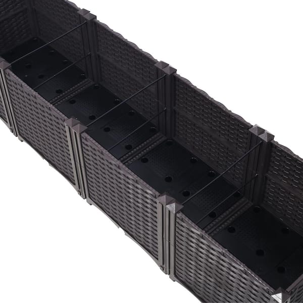 63 in. Brown Plastic Rectangular Outdoor Planter Raised Beds with Drainage Plug, Self-Watering for Vegetable Flower