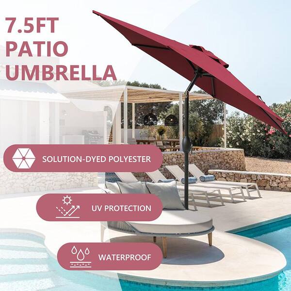 7.5 ft. Steel Push-Up Patio Umbrella with Crank and Push Button Tilt, Water Resistant, 6 Aluminum Ribs in Red