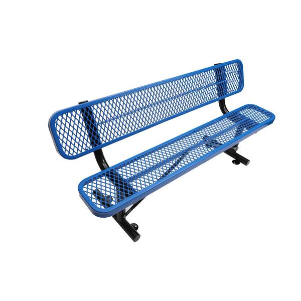 72.4 in. 4-Person Seating Capacity Metal Outdoor Bench 6 ft. Outdoor Steel Bench with Backrest in Blue Finish