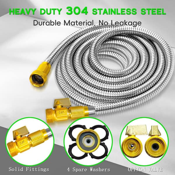 75ft Stainless Steel Heavy Duty Garden Hose with 10 Function Nozzle Flexible Lightweight No-Kink Puncture Proof