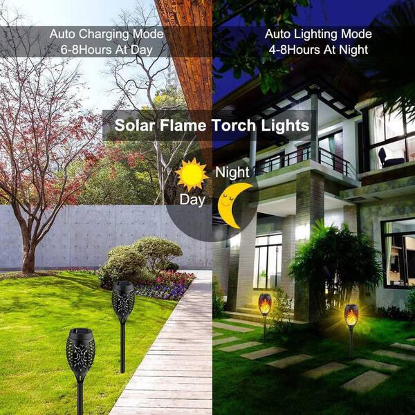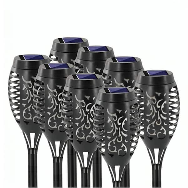 8 Pack Black ABS Solar Torch Lights with Flickering Flame Waterproof Outdoor Garden Pathway Decor