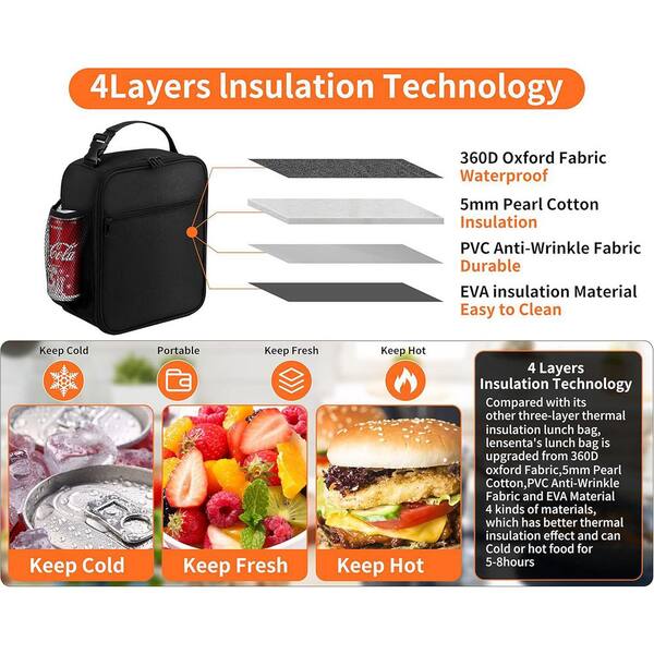 8 qt. Reusable Insulated Lunch Box Cooler for Men and Women, Lightweight and Portable, Waterproof and Durable, Black