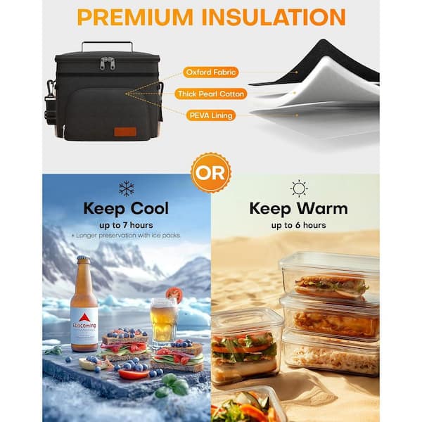 9 qt. Leak-Proof Insulated Lunch Bag Cooler with 4 Pockets and Adjustable Strap for Work, Picnic, Travel-Medium Black
