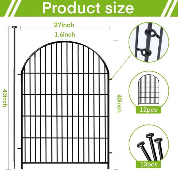 Arched Design 40 in. Rustproof Metal Garden Fence with Gate 12 Panels Animal Barrier for Yard Black Edging