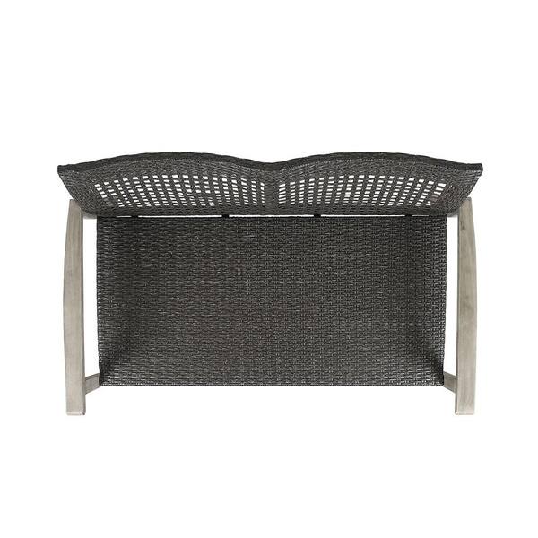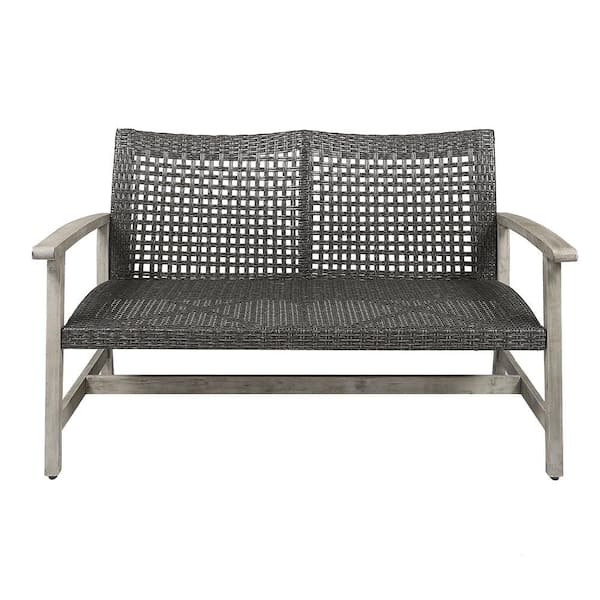 Gray Wicker Outdoor Love Seat with Acacia Wood Finish for Patio, Garden , Backyard