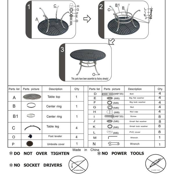 Lattice-Patterned Design Round Powder-Coated Cast Aluminum Outdoor Dining Table with Umbrella Hole in Gunmetal