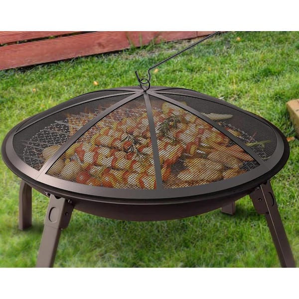 Outdoor Fire Pit Spark Screen Round Cover 22 in. with Handle and Poker, 12 Reinforced Bars in Black