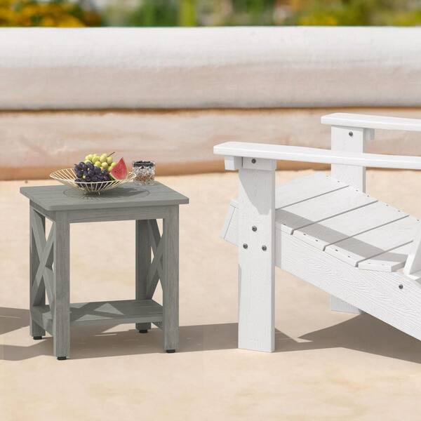 Small Outdoor Side Table HDPS Adirondack Patio End Table 2 Tier Porch Pool Garden Weather Resistant Grey
