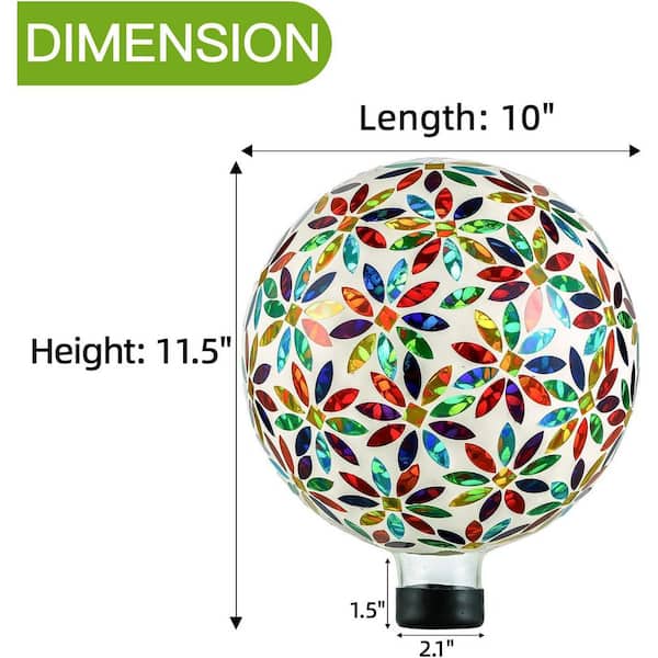 Solar Gazing Ball Multi-Color 10 in. Mosaic Glass Gazing Globe with Solar Light for Patio Lawn Garden
