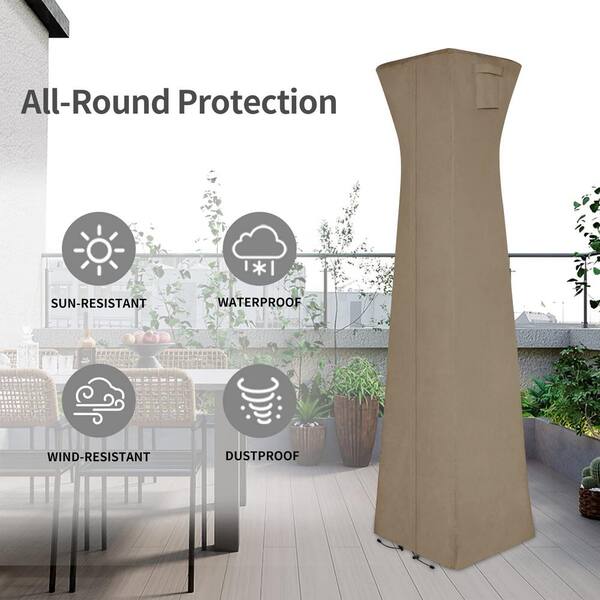 Waterproof 90 in. x 23 in. x 23 in. Camel Fabric Patio Heater Cover with Zipper and Storage Bag
