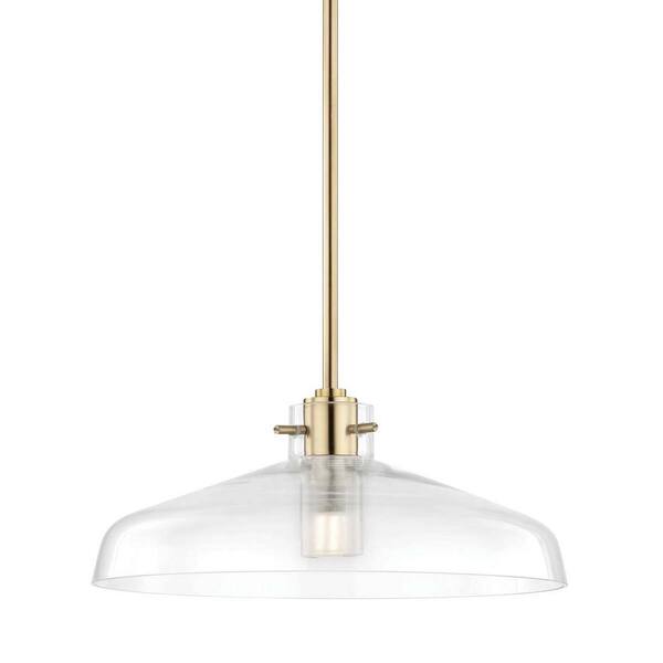 Nemo 1-Light Aged Brass 12 in. W LED Pendant with Clear Glass
