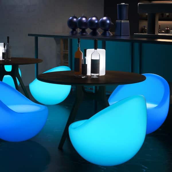 Adjustable Color LED Light Plastic Egg-Shaped Outdoor Bar Stool with Remote Control
