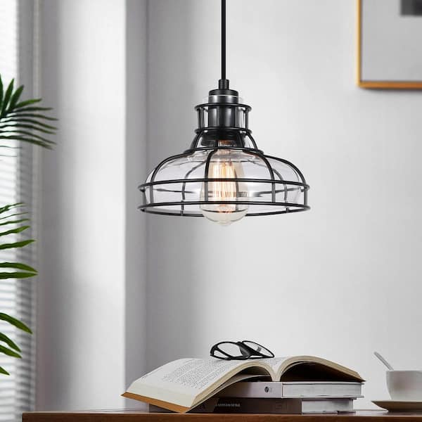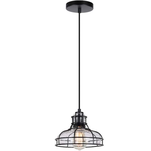 Modern 1-Light Black Cage Pendant Light with Clear Glass Shade