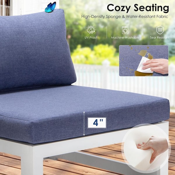Modern 10-Piece White Aluminum Outdoor Patio Conversation Deep Seating Set with Denim Blue Cushions and Coffee Tables