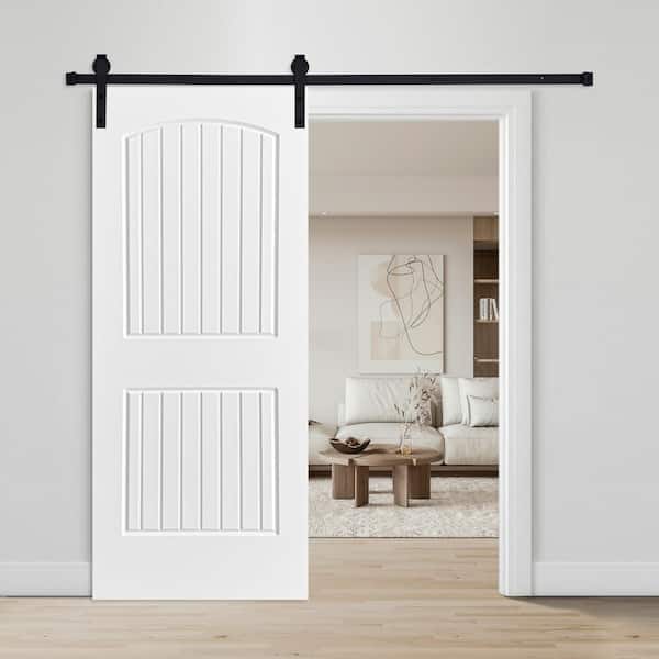 Modern 2-Panel Cheyenne Designed 80 in. x 36 in. MDF Panel White Painted Sliding Barn Door with Hardware Kit