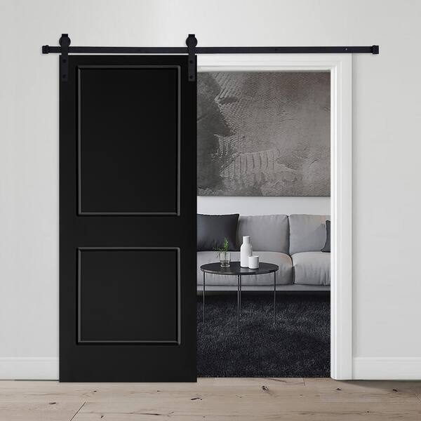 Modern 2-Panel Designed 80 in. x 28 in. MDF Panel Black Painted Sliding Barn Door with Hardware Kit