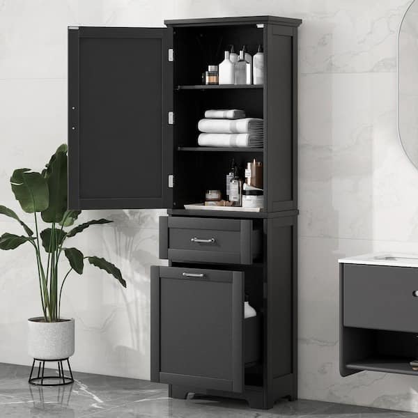 Modern 20 in. W x 13 in. D x 68.1 in. H Black Tall Bathroom Storage Linen Cabinet with 2 Different Size Drawers