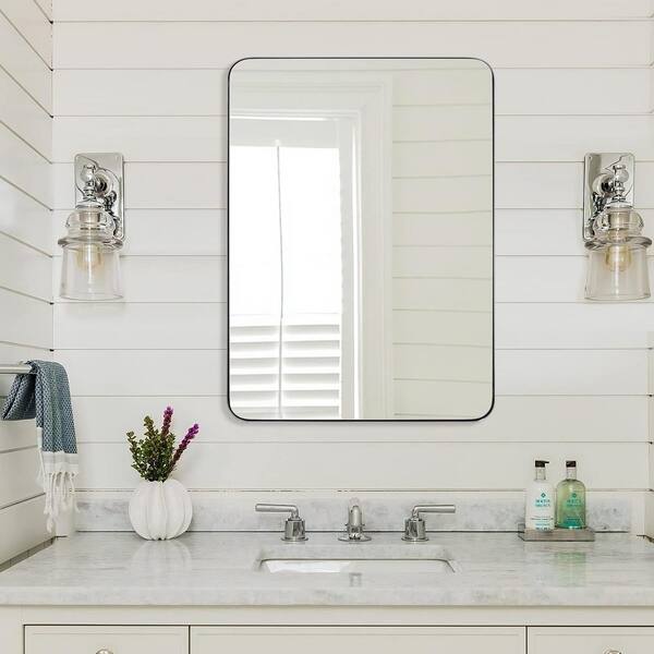 Modern 22 in. W x 30 in. H Rounded Rectangular Metal Framed Silver Mirror for Living Room