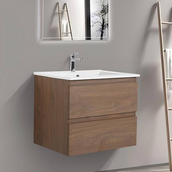 Modern 24 in. W x 18.3 in. D x 20.5 in. H Floating Bath Vanity Cabinet Without Top in Brown Oak
