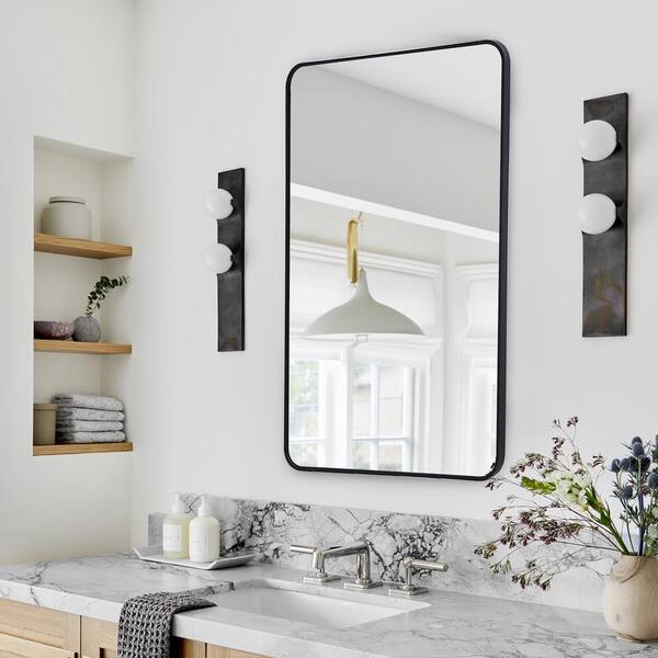 Modern 24 in. W x 32 in. H Rectangular Framed Wall Bathroom Vanity Mirror in Black