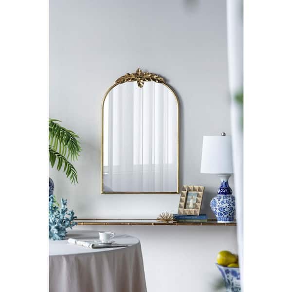 Modern 24 in. W x 36 in. H Arched Framed Wall Bathroom Vanity Mirror in Gold for Living Room, Bathroom, Entryway