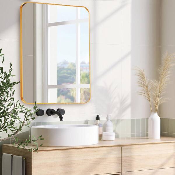 Modern 24 in. W x 36 in. H Rectangular Framed Wall Bathroom Vanity Mirror in Gold for Living Room and Bedroom