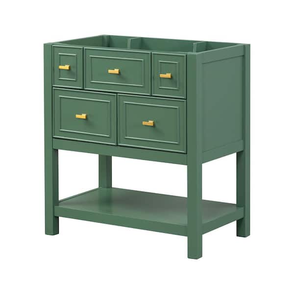 Modern 29.56 in. Bath Vanity Cabinet without Top in Green Unassembled with 5-Drawers Freestanding Painted Finish