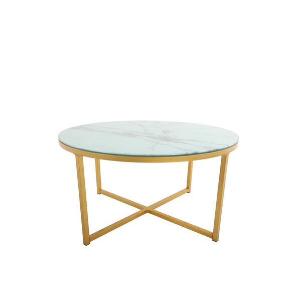 Modern 31.5 in. L Marble White Top and Golden Round Coffee Table with Metal Base