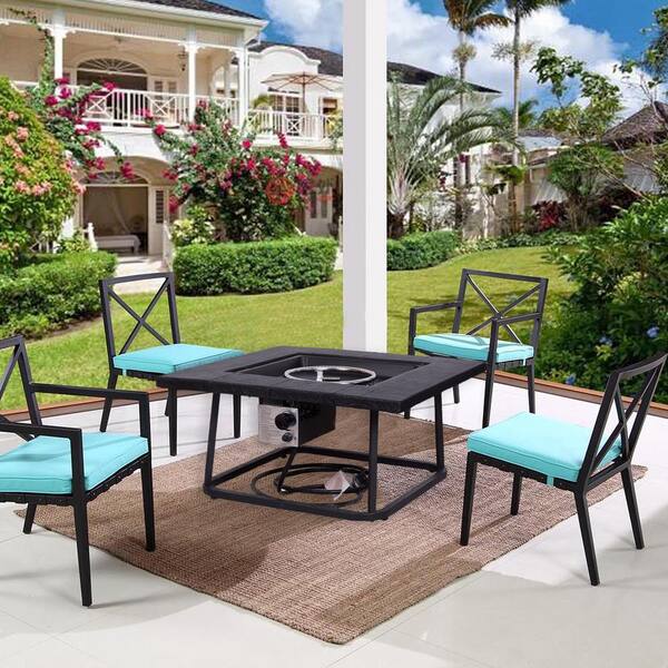 Modern 32 in. W x 16 in. H Square Propane Terrace Fire Table Black Fire Pit