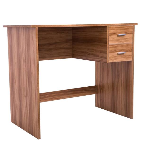 Modern 35.43 in. Retangular Light Wood Wood 2 Drawer Computer Desk with Foot Rack