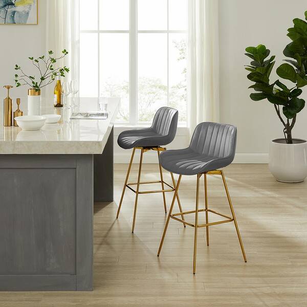 Modern 38.78 in. Height Gray Velvet Swivel Bar Stools with 4-Metal Foots and Low Back (Set of 2)