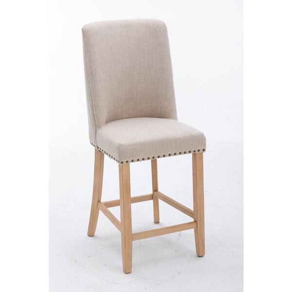 Modern 44.49 in. Beige High Back Wood Frame Bar Stool with Fabric Material (Set of 2)